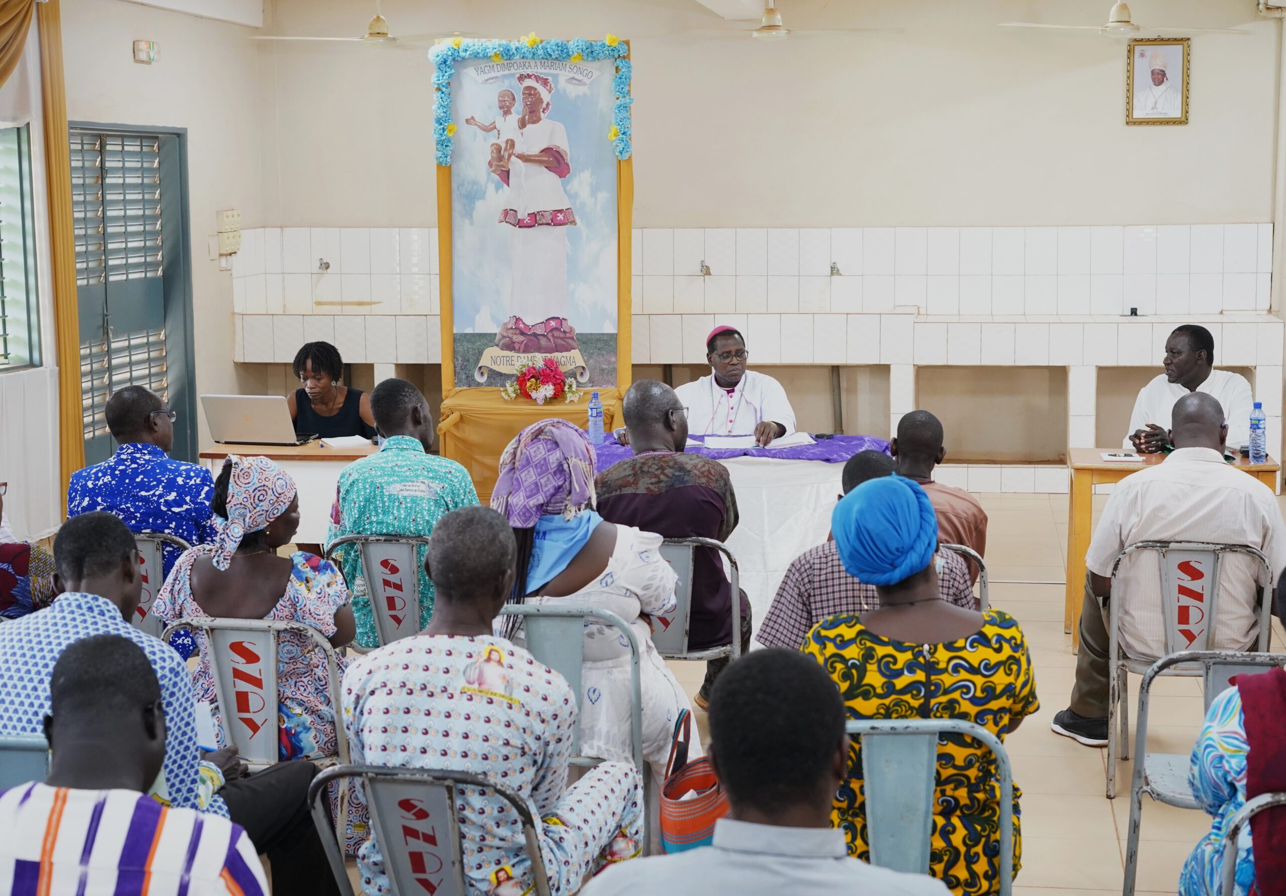 Les membres de la Commission diocésaine de la pastorale de la santé réunis en assemblée générale le 5 octobre dernier ont eu l’honneur d’accueillir Monseigneur Prosper KONTIEBO à leur rencontre. Auparavant annoncé pour présider la célébration eucharistique du 6 octobre intégrant la 2e édition du pèlerinage, il est plutôt arrivé la veille pour des raisons de calendrier et a pris part à l’AG à la satisfaction générale des participants.